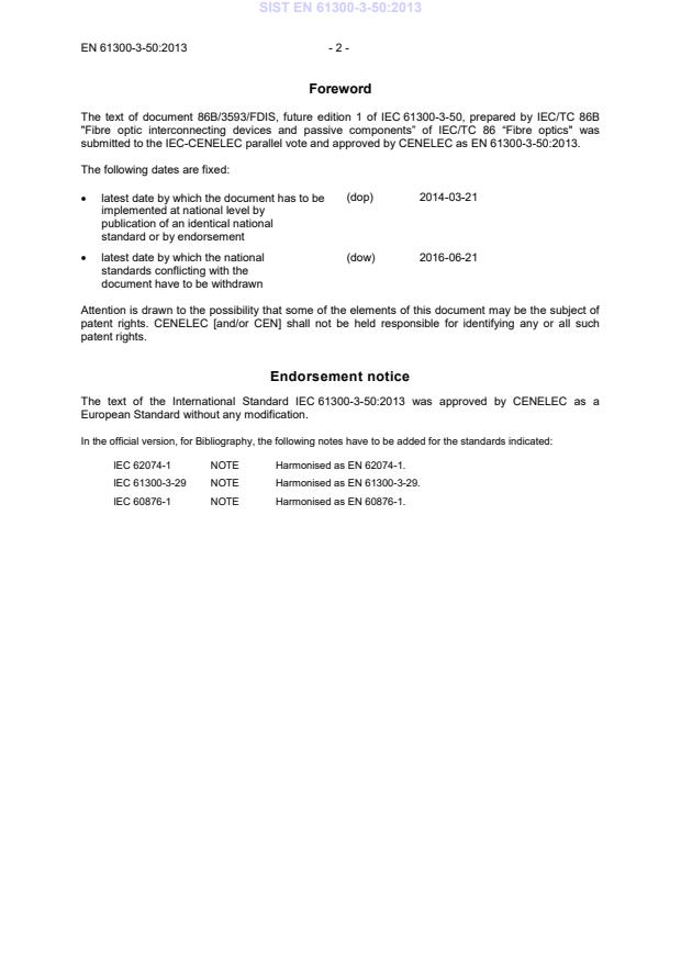 EN 61300-3-50:2013 has the following relationships with other standards: It is inter standard links to EN IEC 61300-3-50:2026, EN 61300-3-2:2009, EN 61300-1:2011, EN IEC 62343-3-4:2018, EN IEC 61300-1:2022, EN 61300-1:2016, EN IEC 61753-071-02:2020, EN 61753-071-2:2014, EN 61300-3-50:2013/AC:2015. Understanding these relationships helps ensure you are using the most current and applicable version of the standard.