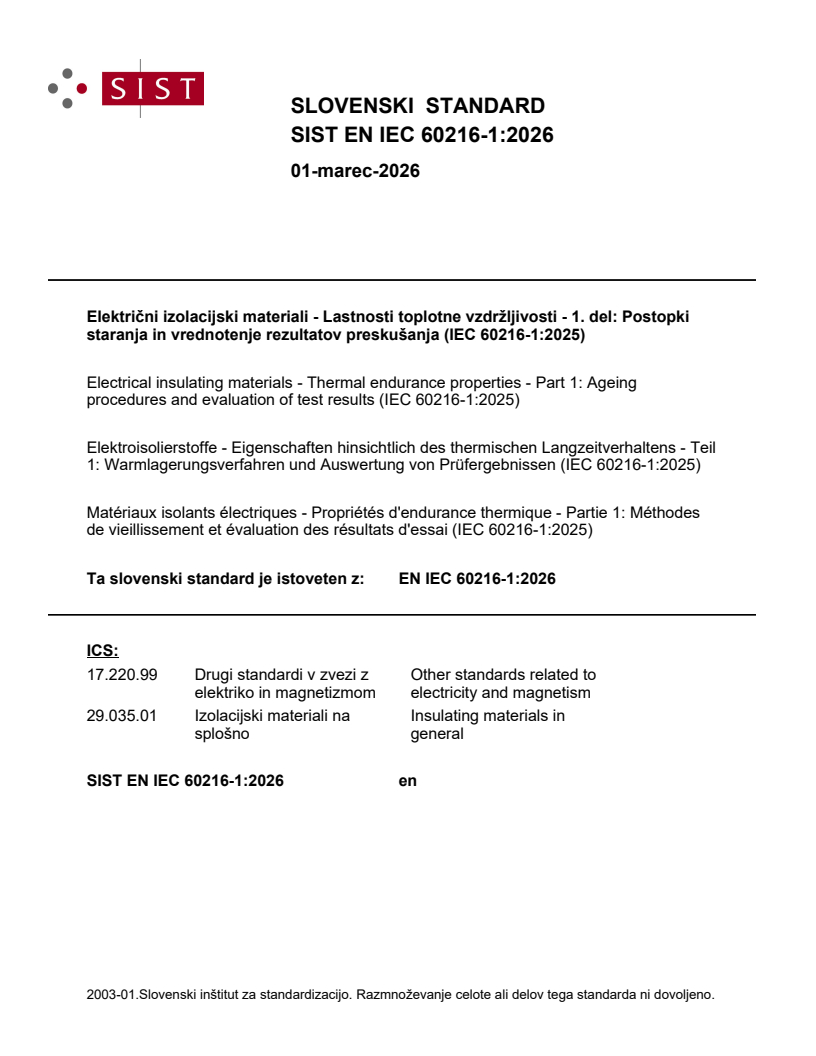 Ta slovenski standard je istoveten z: EN IEC 60216-1:2026