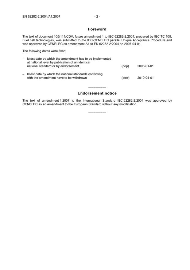 was approved by CENELEC as amendment A1 to EN 62282-2:2004 on 2007-04-01.