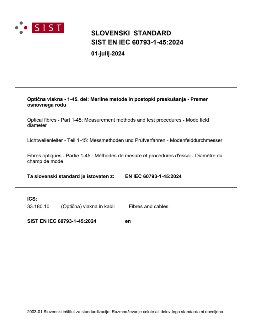Ta del standarda IEC 60793 določa enotne zahteve za merjenje premera osnovnega redu (MFD) enorodnih optičnih vlaken, pri čemer pomaga pri pregledu vlaken in kablov za komercialne namene.