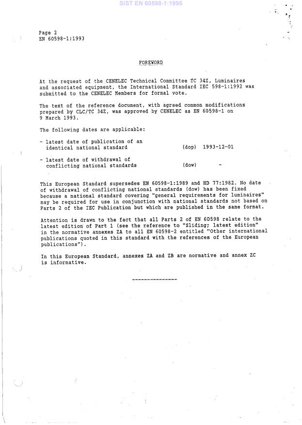 D84/032: dow fixed following withdrawal vote of EN 60598-1:1989 + A11:1994 * D84/064: SNC for BE * Corrigendum to EN issued May 1996 * Superseded by EN 60598-1:1997