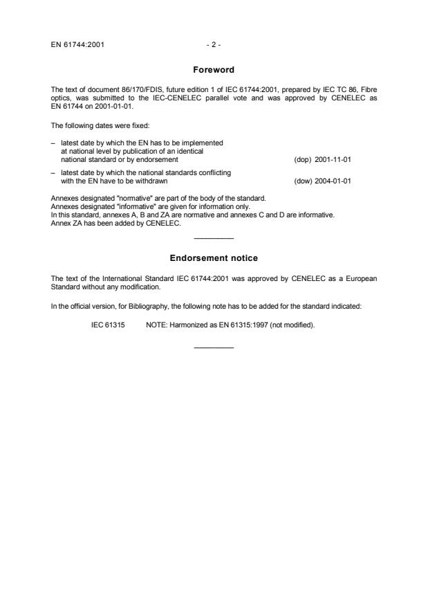 The text of the International Standard IEC 61744:2001 was approved by CENELEC as a European