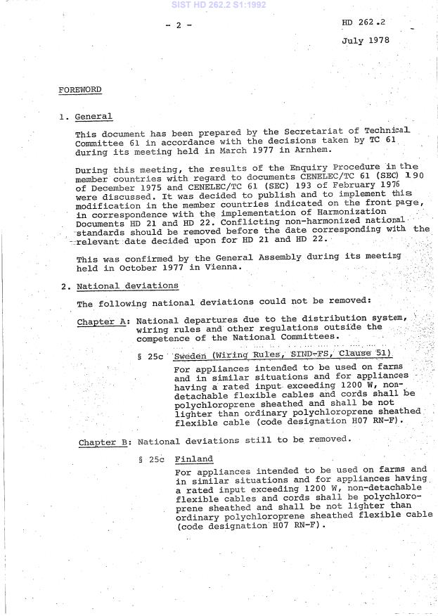 HD 262.2 S1:1978 has the following relationships with other standards: It is inter standard links to EN 60335-2-73:1996, EN 60335-2-74:1996. Understanding these relationships helps ensure you are using the most current and applicable version of the standard.