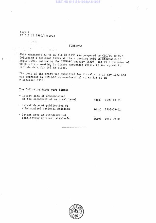 Ta slovenski standard je istoveten z: HD 516 S1:1990/A3:1993
