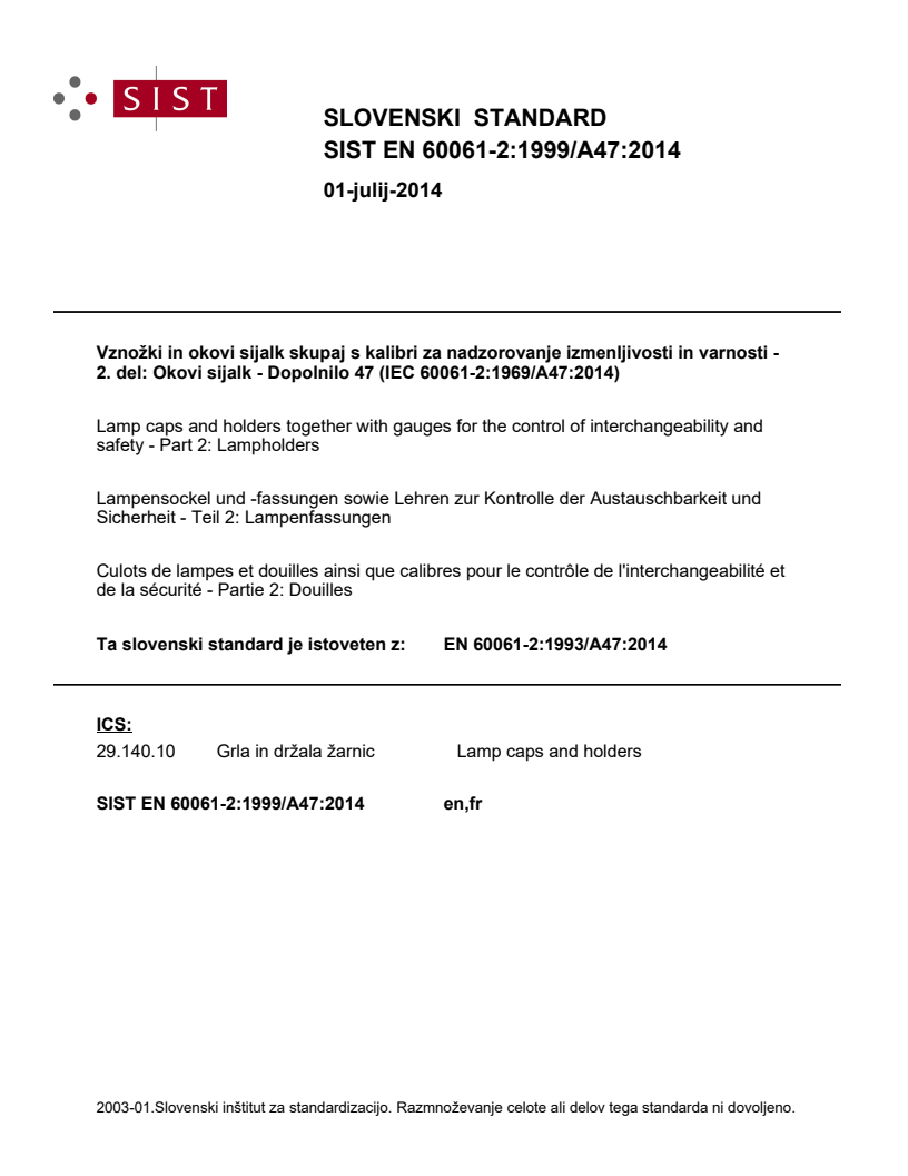 Ta slovenski standard je istoveten z: EN 60061-2:1993/A47:2014