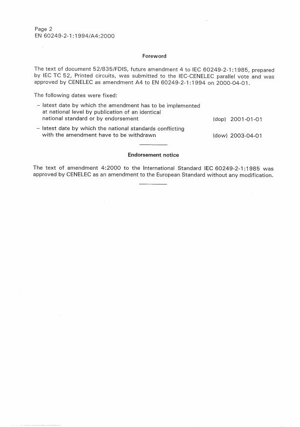 EN 60249-2-1:1994/A4:2000 is available in PDF format for immediate download after purchase. The document can be added to your cart and obtained through the secure checkout process. Digital delivery ensures instant access to the complete standard document.