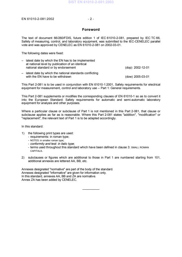 Ta slovenski standard je istoveten z: EN 61010-2-081:2002