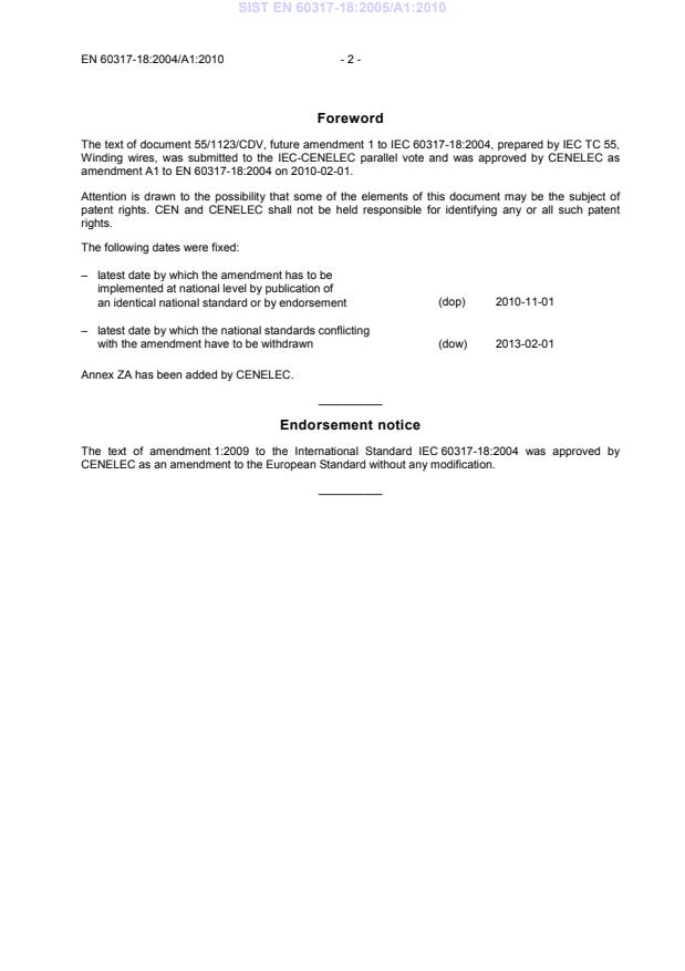 Amandma A1:2010 je dodatek k standardu SIST EN 60317-18:2005