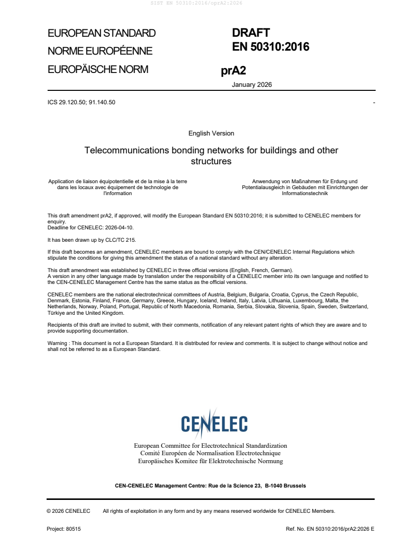 Project: 80515 Ref. No. EN 50310:2016/prA2:2026 E