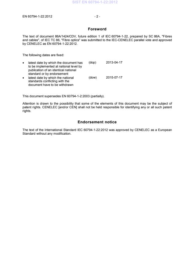 Ta slovenski standard je istoveten z: EN 60794-1-22:2012
