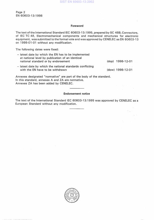 Ta slovenski standard je istoveten z: EN 60603-13:1998