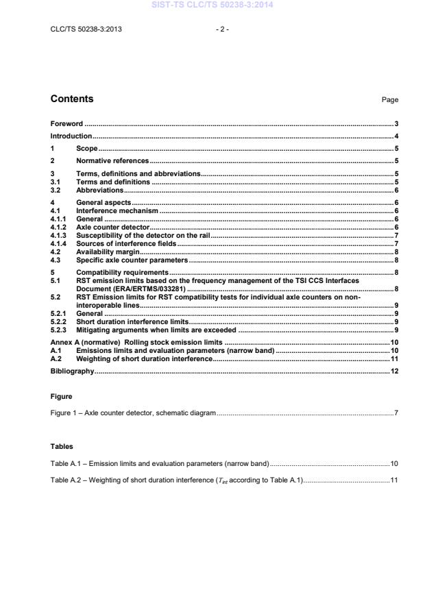 CLC/TS 50238-3:2013 is a technical specification published by CLC. Its full title is "Railway applications - Compatibility between rolling stock and train detection systems - Part 3: Compatibility with axle counters". This standard covers: For the purpose of demonstrating compatibility between rolling stock and axle counter detectors, this Technical Specification defines the interference limits and evaluation methods to verify rolling stock emissions. Wheel sensors and crossing loops are not covered by this Technical Specification. This Technical Specification gives recommended individual limits to be applied to establish compatibility between RST and all selected types of axle counter detectors, including any covered by national standards. The list of selected types of axle counters and their limits for compatibility are drawn on the basis of established performance criteria. It is expected that the trend for newly signalled interoperable lines will be fitted with types that meet the compatibility limits published in the TSI CCS Interfaces Document (ERA/ERTMS/033281). To ensure adequate operational availability, it is essential that the rolling stock complies with the defined limits; otherwise, the established availability of the valid output function of axle counter detectors may be compromised. NOTE The influences from metal parts or inductively coupled resonant circuits on the vehicle, eddy current brakes or magnetic brakes, are not covered by this Technical Specification but are considered on the basis of national technical specifications.