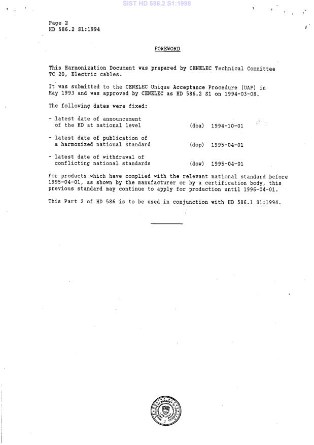 HD 586.2 S1:1994 has the following relationships with other standards: It is inter standard links to EN 60702-2:2002. Understanding these relationships helps ensure you are using the most current and applicable version of the standard.