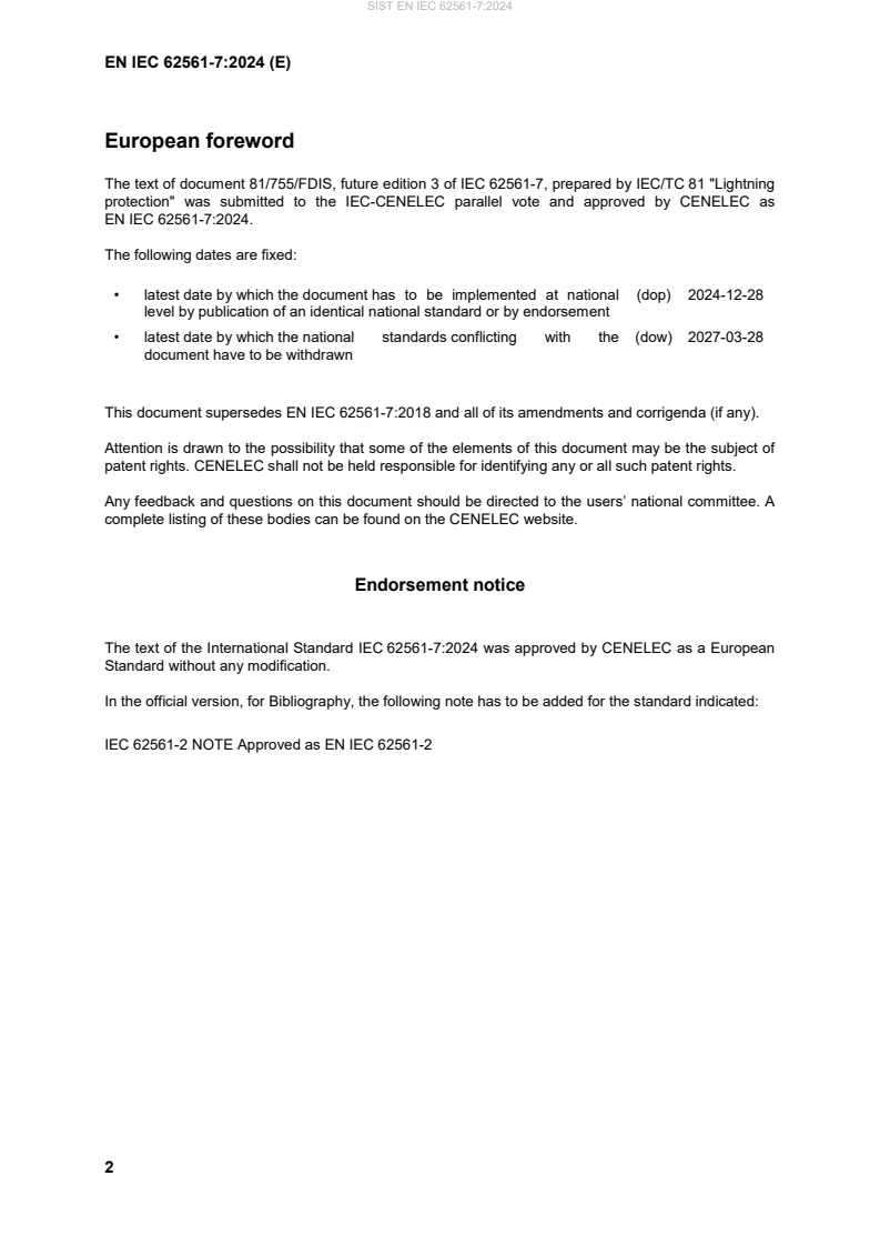 ICS 29.020; 91.120.40 Supersedes EN IEC 62561-7:2018