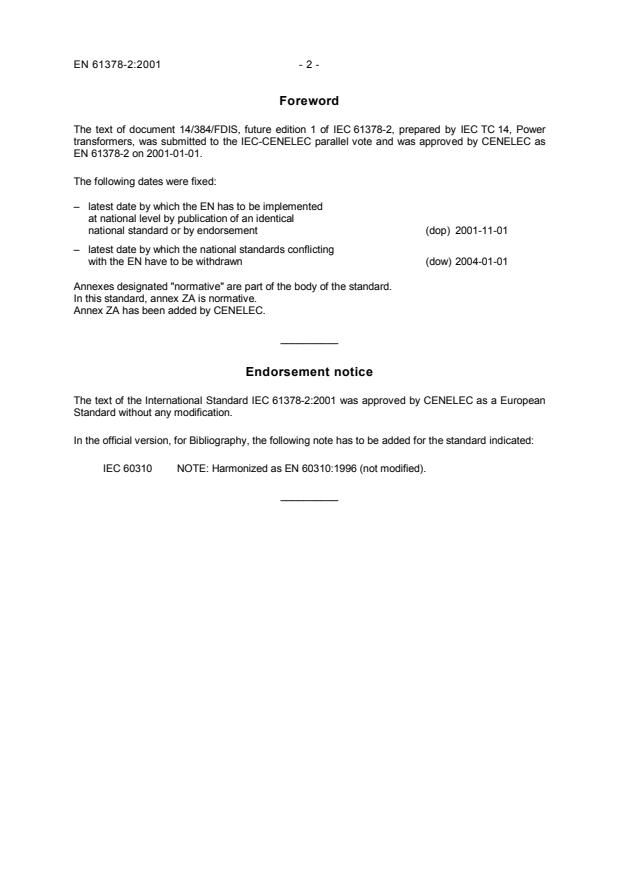 The text of the International Standard IEC 61378-2:2001 was approved by CENELEC as a European