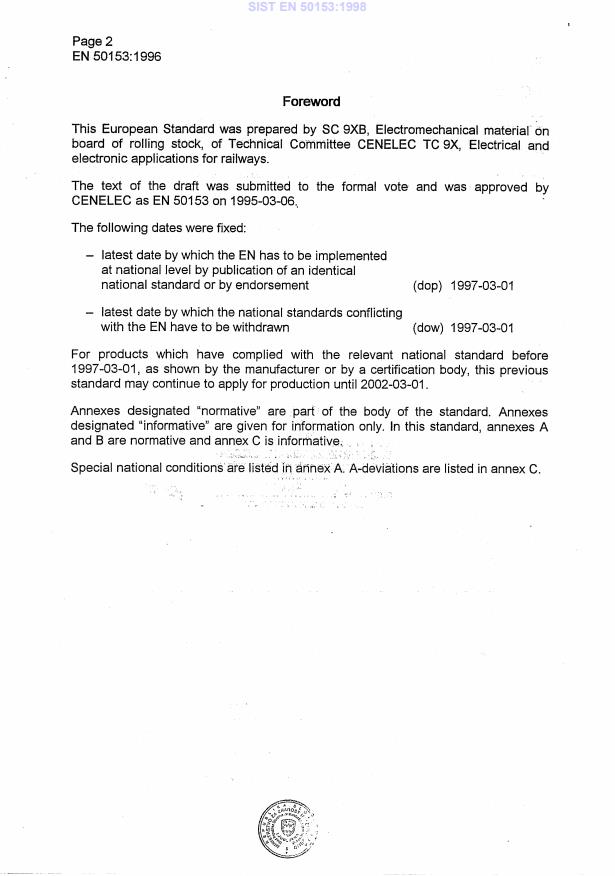 EN 50153:1996 has the following relationships with other standards: It is inter standard links to EN 50153:2002. Understanding these relationships helps ensure you are using the most current and applicable version of the standard.