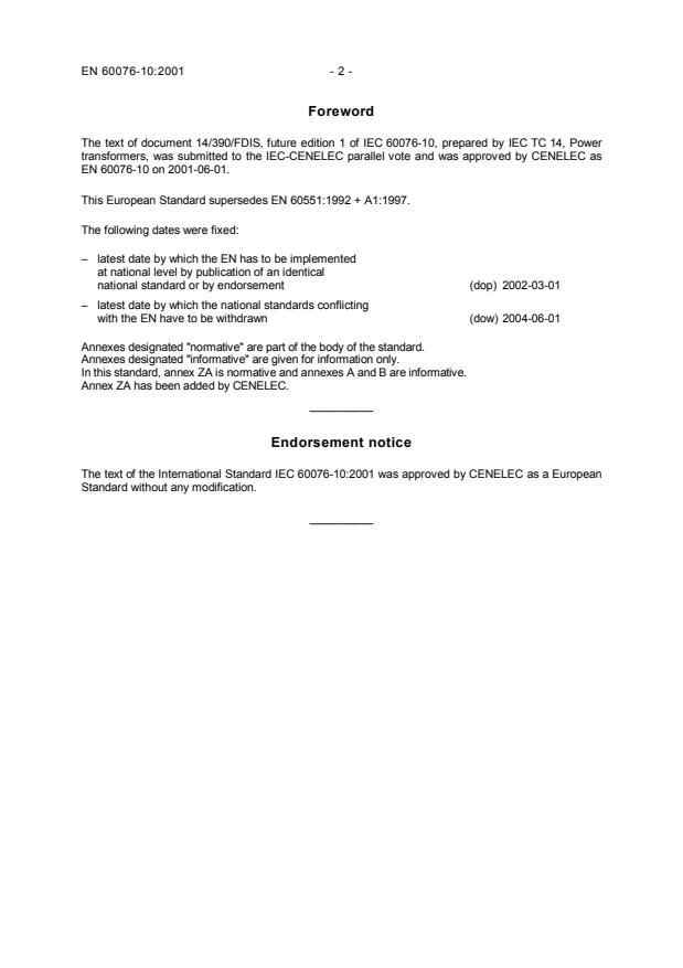 EN 60076-10:2001 has the following relationships with other standards: It is inter standard links to EN 60551:1992, EN 60551:1992/A1:1997, EN 60076-10:2016. Understanding these relationships helps ensure you are using the most current and applicable version of the standard.