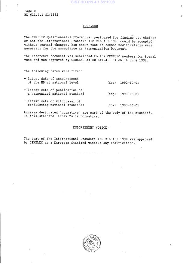HD 611.4.1 S1:1992 has the following relationships with other standards: It is inter standard links to EN 60216-4-1:2006, EN 60811-1-2:1995, EN 60695-10-2:2003, EN 60216-4-2:2000, EN 61857-1:2005, EN 60626-2:1995, EN 60950-1:2001, EN 60216-4-3:2000, EN 60034-18-1:1994, EN 60216-6:2004, EN 60455-2:1999, EN 61857-1:1999, EN 60216-1:2001, EN 60695-10-3:2002, EN 60684-2:1997. Understanding these relationships helps ensure you are using the most current and applicable version of the standard.