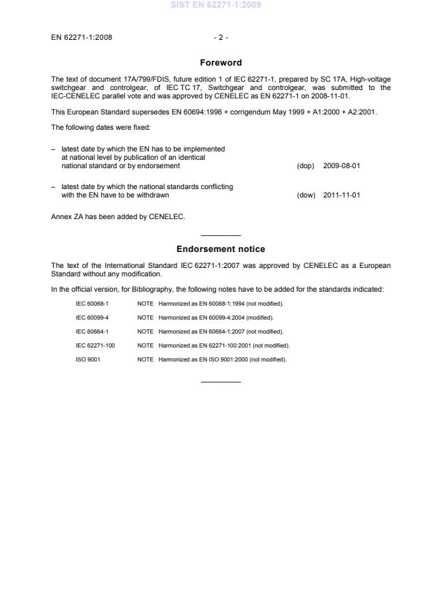 EN 60694:1996/A2:2001 - Common specifications for high-voltage switchgear and controlgear standards - Effective Date