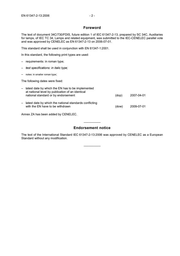 Ref. No. EN 61347-2-13:2006 E