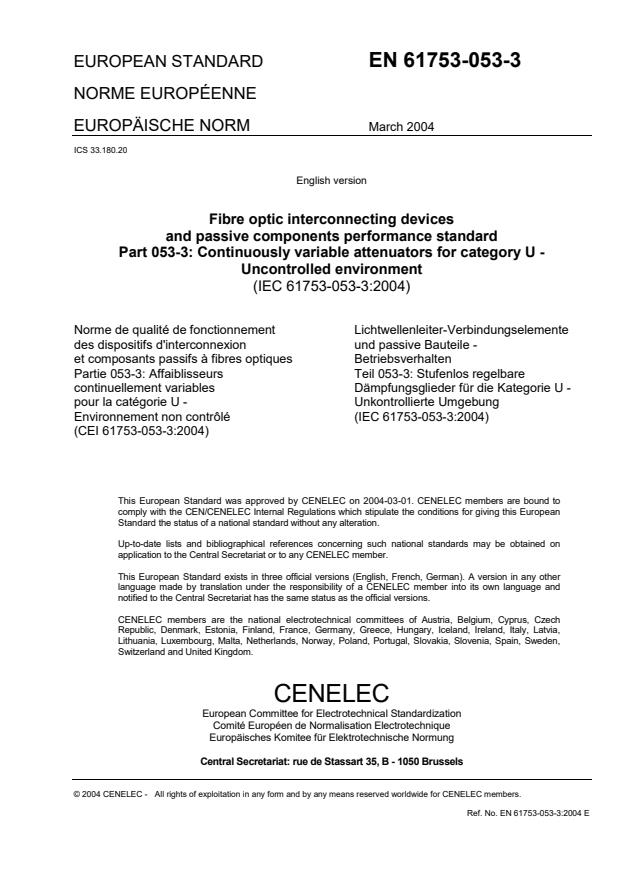 IEC-CENELEC parallel vote and was approved by CENELEC as EN 61753-053-3 on 2004-03-01.