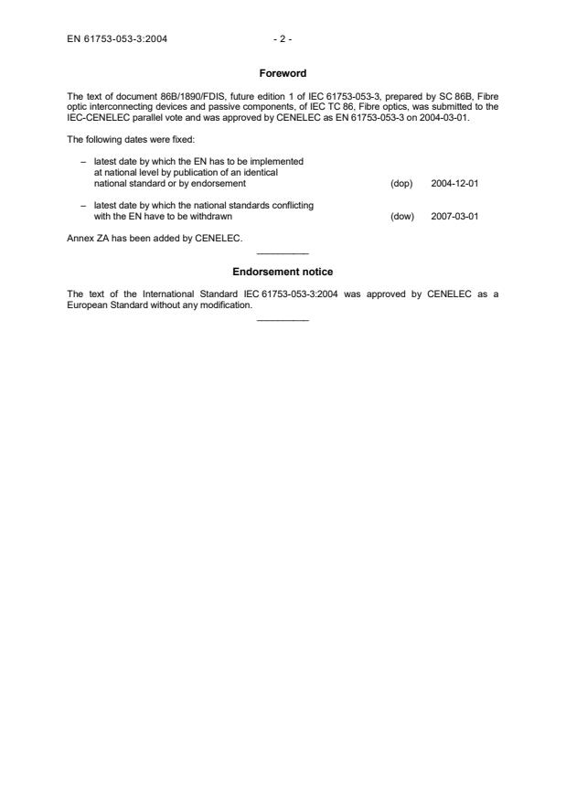 The text of the International Standard IEC 61753-053-3:2004 was approved by CENELEC as a