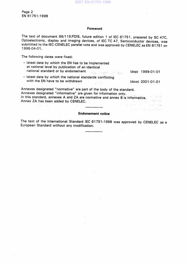 Ta slovenski standard je istoveten z: EN 61751:1998