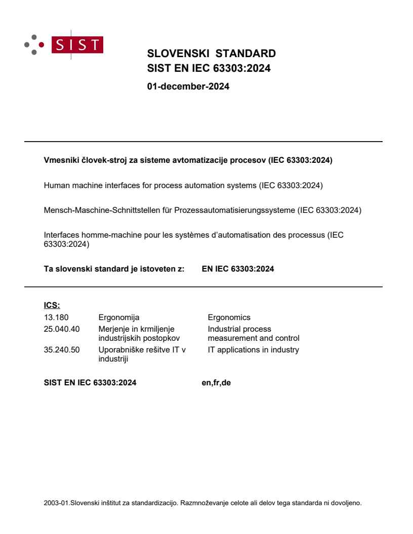 Vmesniki človek-stroj za sisteme avtomatizacije procesov (IEC 63303:2024)