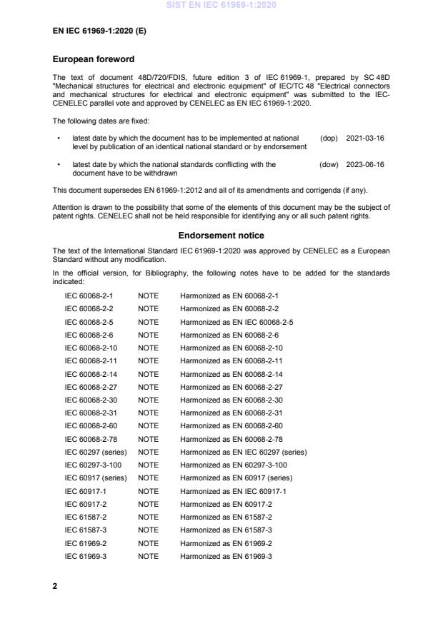 EN IEC 61969-1:2020 is a standard published by CLC. Its full title is "Mechanical structures for electrical and electronic equipment - Outdoor enclosures - Part 1: Design guidelines". This standard covers: IEC 61969-1:2020 is available as IEC 61969-1:2020 RLV which contains the International Standard and its Redline version, showing all changes of the technical content compared to the previous edition.IEC 61969-1:2020 contains design guidelines for outdoor enclosures and is applicable over a wide field of mechanical, electromechanical and electronic equipment and its installation where a modular design is used. The objectives of this document are: - to provide an overview of specifications for enclosures focused on requirements for outdoor applications for stationary use at non-weather protected locations, and - to achieve product integrity under outdoor conditions and to ease product selection for the sourcing of outdoor enclosures from different vendors. This third edition cancels and replaces the second edition published in 2011. This edition constitutes a technical revision. This edition includes the following significant technical changes with respect to the previous edition: - alignment with the content of ETSI EN 300 019 and IEC 60721 series latest editions, particularly with the actualization of climate conditions; - new requirements added to reflect market requirements on environmental issues; - improvement on terminology and overall editorial improvement.