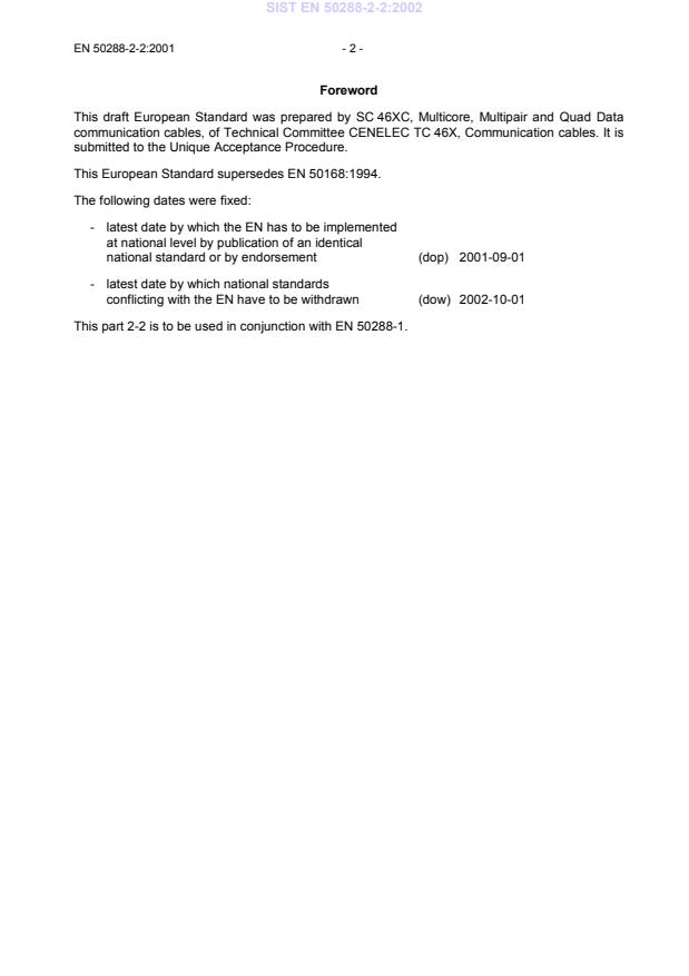Ta slovenski standard je istoveten z: EN 50288-2-2:2001