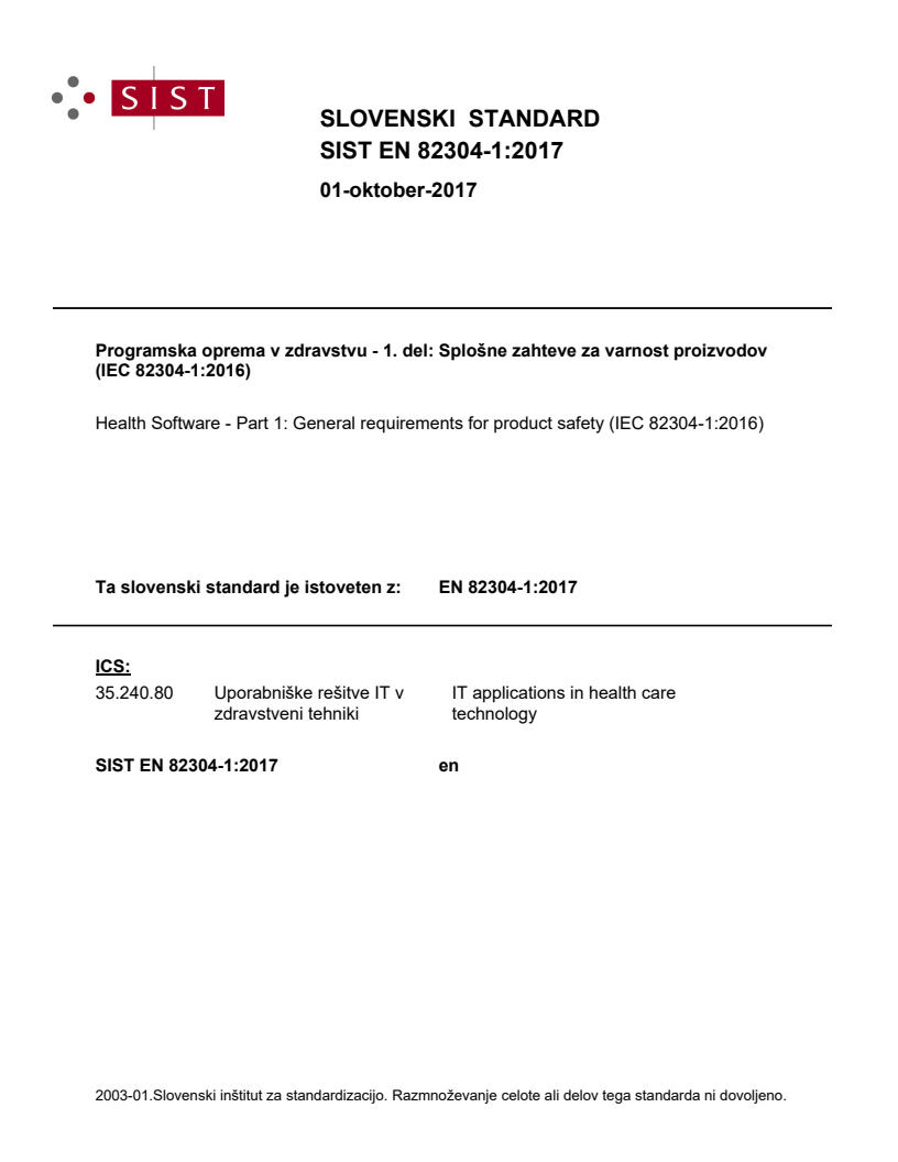 Ta slovenski standard je istoveten z: EN 82304-1:2017