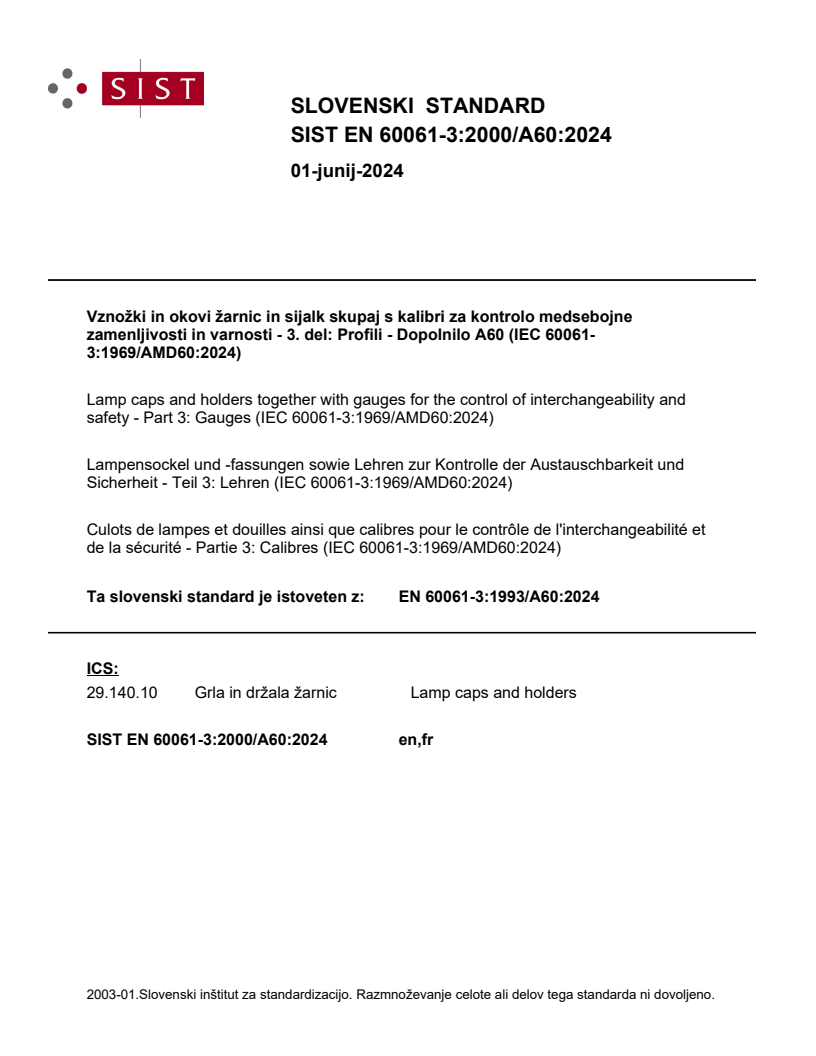 Ta slovenski standard je istoveten z: EN 60061-3:1993/A60:2024