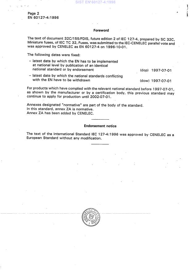 Ta slovenski standard je istoveten z: EN 60127-4:1996