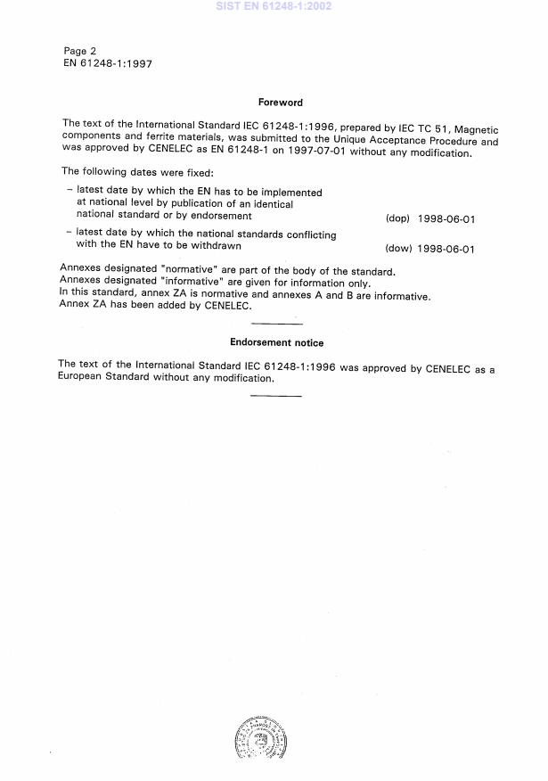 2003-01.Slovenski inštitut za standardizacijo. Razmnoževanje celote ali delov tega standarda ni dovoljeno.Transformers and inductors for use in telecommunication and electronic equipment - Part 1: generic specification (IEC 61248-1:1996)Transformatoren und Drosseln für elektronische und nachrichtentechnische Einrichtungen -- Teil 1: FachgrundspezifikationTransformateurs et inductances destinés aux équipements électroniques et de télécommunications -- Partie 1: Spécification génériqueTransformers and inductors for use in electronic and telecommunication equipment -- Part 1: Generic specification29.180Transformatorji. DušilkeTransformers. ReactorsICS:Ta slovenski standard je istoveten z:EN 61248-1:1997SIST EN 61248-1:2002en01-september-2002SIST EN 61248-1:2002SLOVENSKI