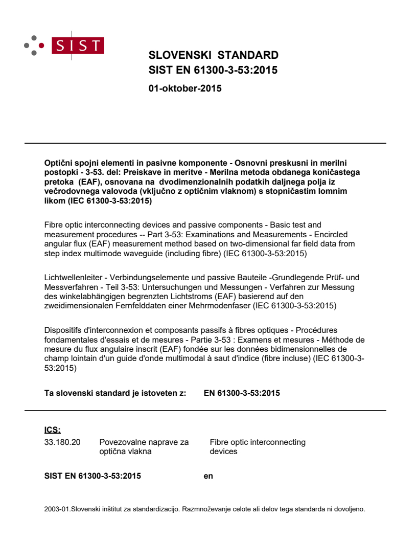 Ta slovenski standard je istoveten z: EN 61300-3-53:2015