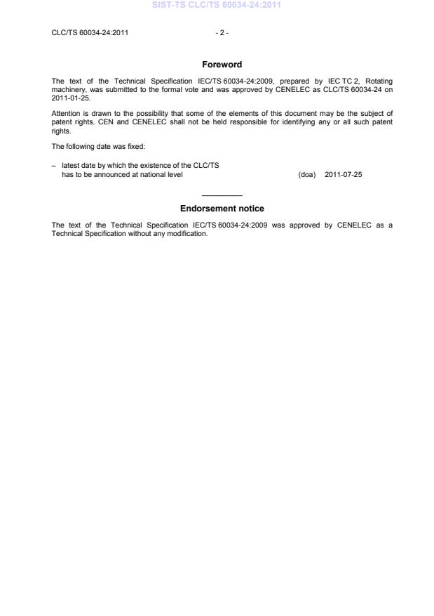 Ta slovenski standard je istoveten z: CLC/TS 60034-24:2011