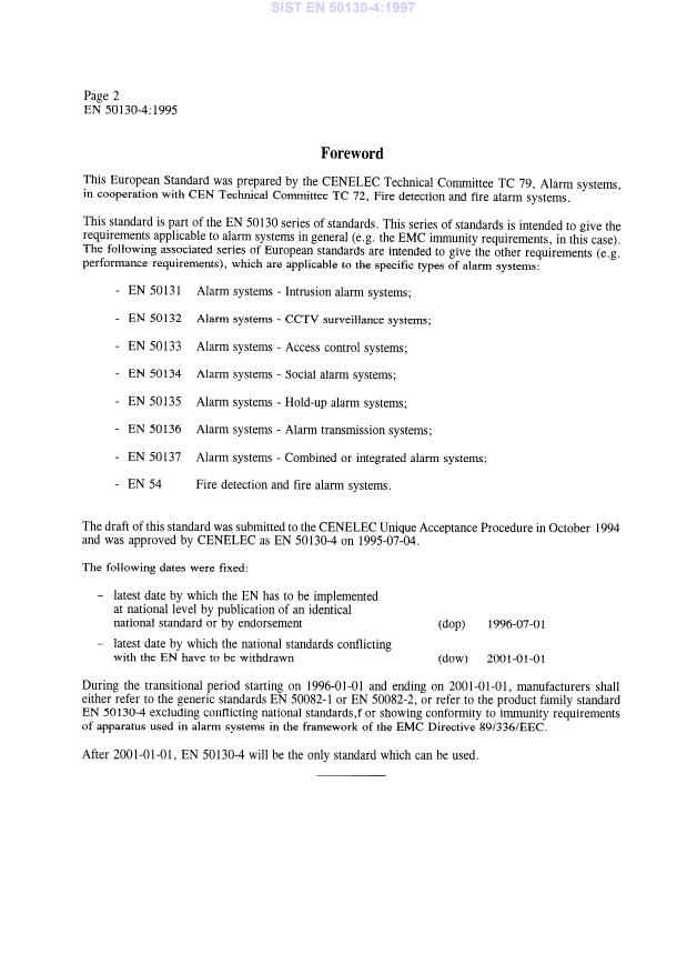 Ta slovenski standard je istoveten z: EN 50130-4:1995