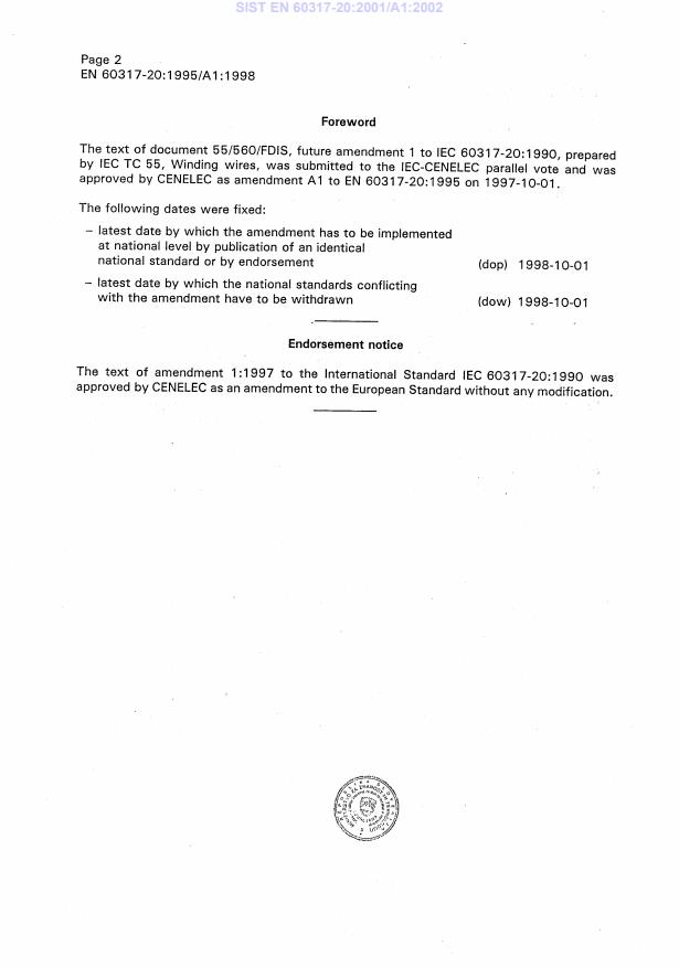 EN 60317-20:1995/A1:1998 is a amendment published by CLC. Its full title is "Specifications for particular types of winding wires - Part 20: Solderable polyurethane enamelled round copper wire, class 155". This standard covers: EN following parallel vote
