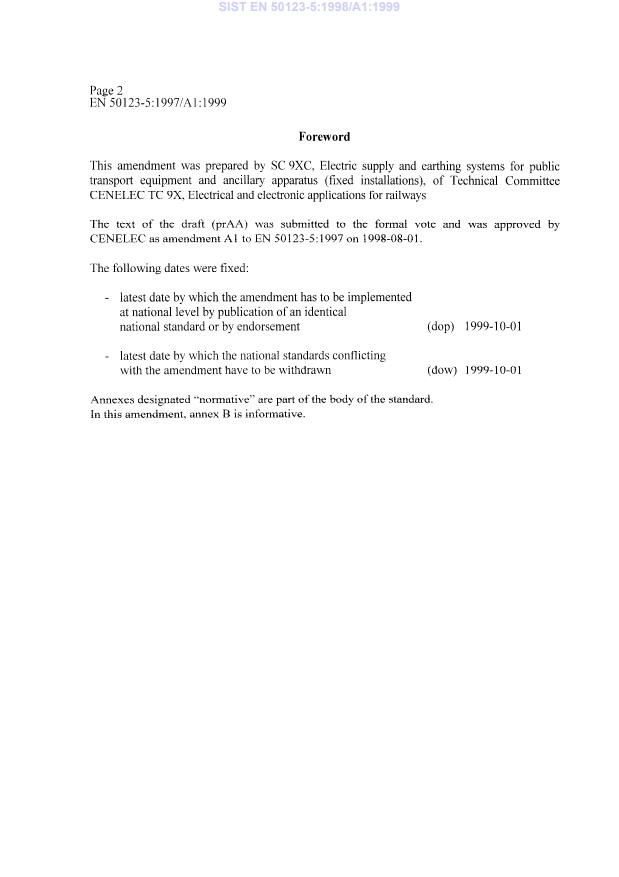 Ta slovenski standard je istoveten z: EN 50123-5:1997/A1:1999