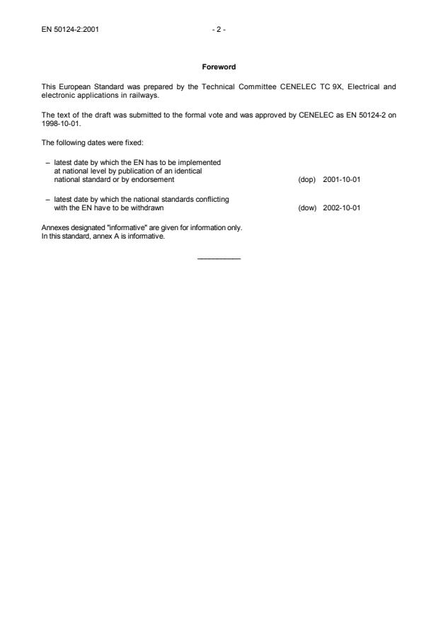 The text of the draft was submitted to the formal vote and was approved by CENELEC as EN 50124-2 on