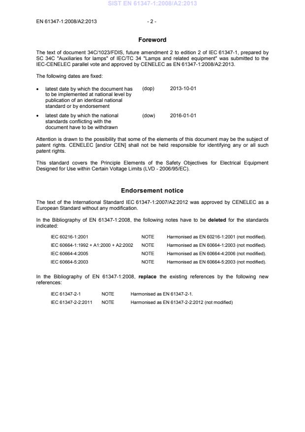 This amendment A2 modifies the European Standard EN 61347-1:2008; it was approved by CENELEC on 2013-