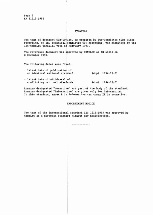 Keywords: EN 61213:1994, analogue audio recording, polarity of magnetization, video tape, signal polarity, FM deviation, reproduce head, test methods, connector applications.