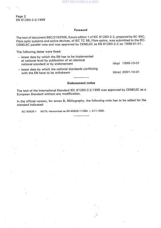 Ta slovenski standard je istoveten z: EN 61280-2-2:1999