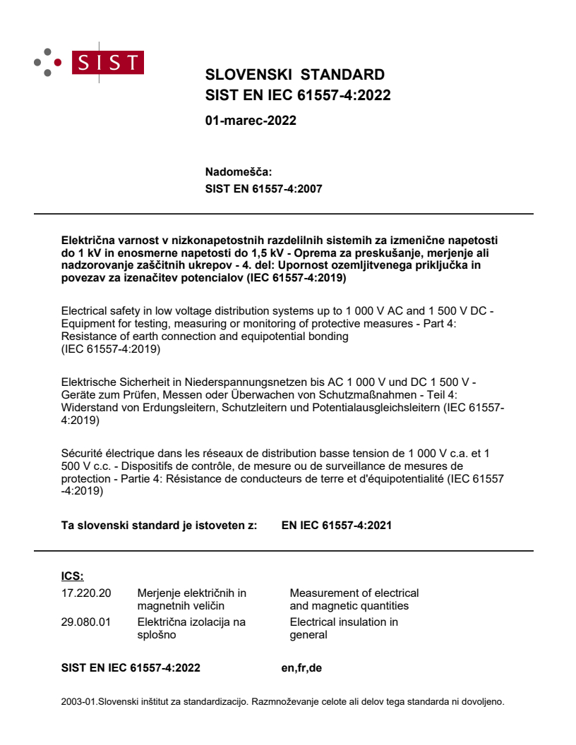 Ta slovenski standard je istoveten z: EN IEC 61557-4:2021