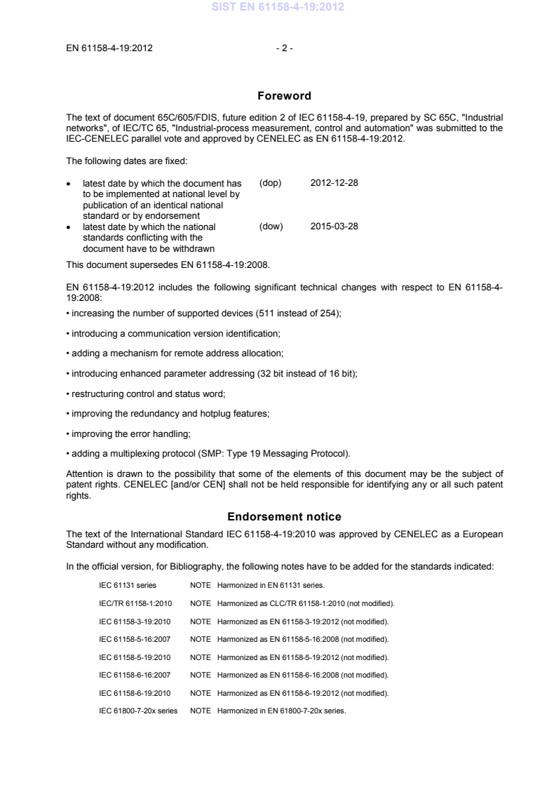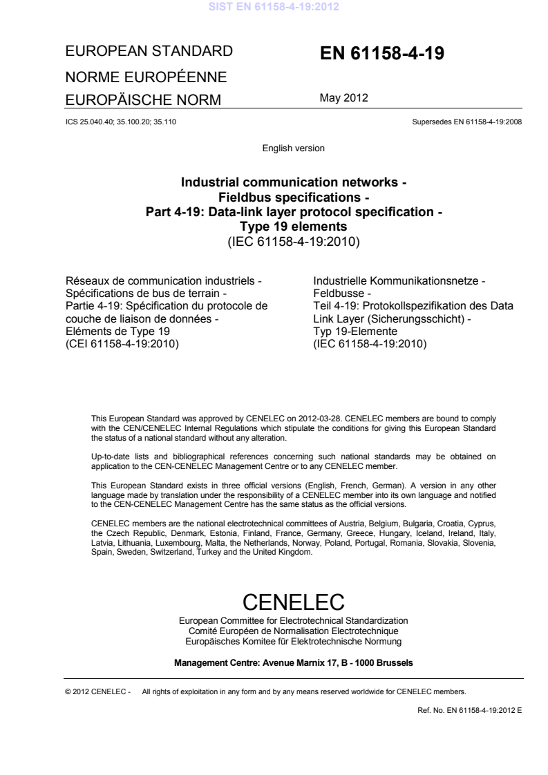 ICS 25.040.40; 35.100.20; 35.110 Supersedes EN 61158-4-19:2008