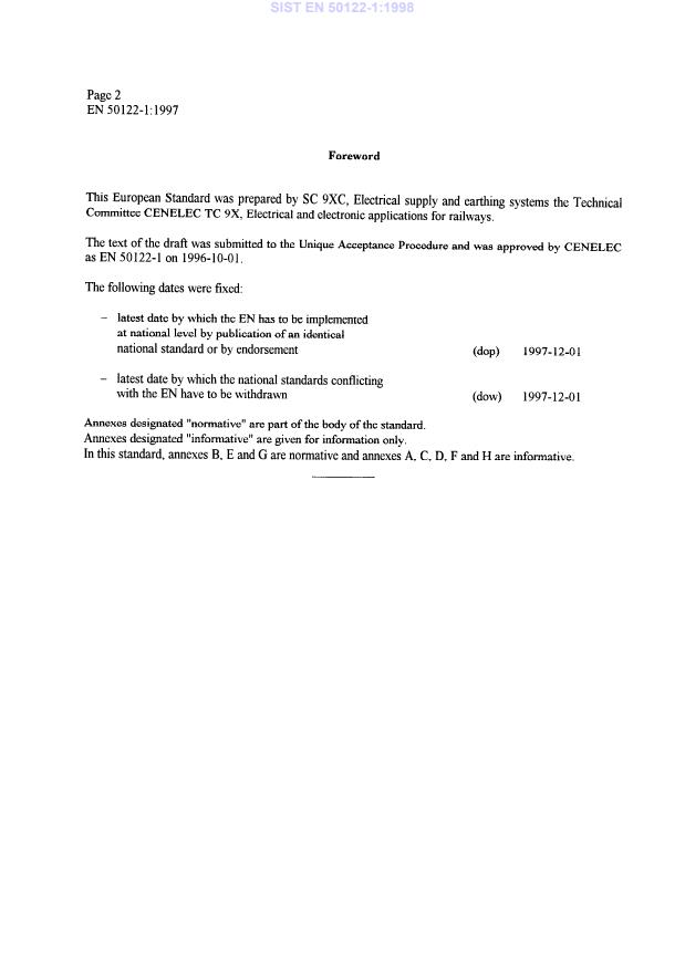 EN 50122-1:1997 is a standard published by CLC. Its full title is "Railway applications - Fixed installations - Part 1: Protective provisions relating to electrical safety and earthing". This standard covers: This standard specifies requirements for the protective provisions relating to electrical safety in fixed installations associated with a.c.-and d.c.-traction systems and to any installations that may be endangered by the traction power supply system It also applies to all fixed installations that are necessary to ensure electrical safety during maintenance work within electric traction systems Note: other provisions may be required to protect work sites for maintenance purposes which are not included in this standard This standard applies to all new lines and to all major revisions to existing lines for electric traction systems described in the standard