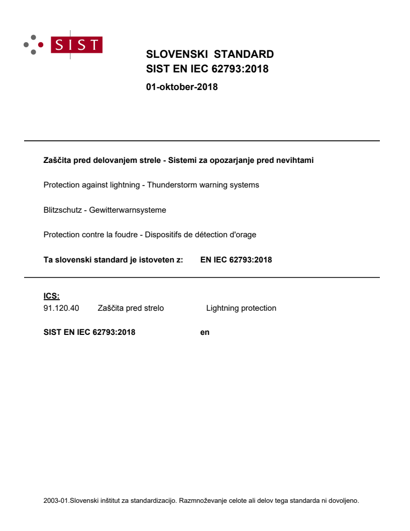 Ta standard se uporablja za uporabo podatkov sistemov za opozarjanje pred nevihtami (sistemi ali oprema, ki zagotavljajo podatke v realnem času) o električni dejavnosti ozračja za spremljanje preventivnih ukrepov.