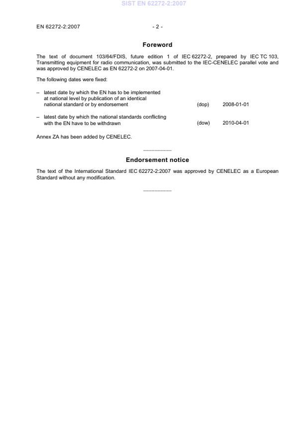 The text of the International Standard IEC 62272-2:2007 was approved by CENELEC as a European