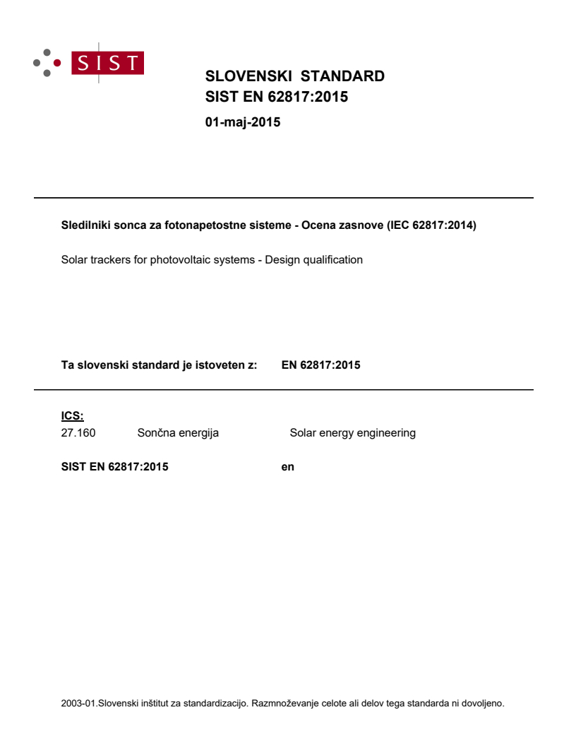 Keywords: EN 62817:2015, IEC 62817:2014, solar trackers, design qualification, photovoltaic systems, tracker testing, pointing error, mechanical testing, environmental testing.