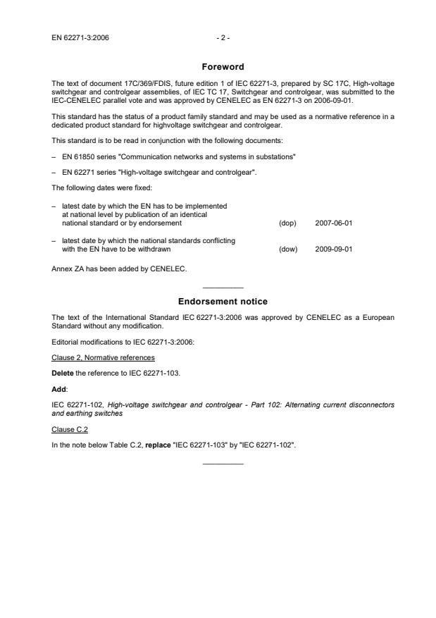 IEC-CENELEC parallel vote and was approved by CENELEC as EN 62271-3 on 2006-09-01.
